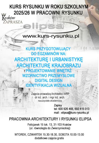 Kurs Rysunku Elipsa Architektura, Wzornictwo zapisy na rok szkolny 2025/2026