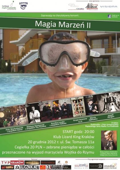 Ju po raz drugi Ambasador Fundacji Mam Marzenie - Magorzata Kouchowska, a take jej wolontariusze serdecznie zapraszaj wszystkich na koncert charytatywny Magia Marze II, ktry odbdzie si 20 grudnia 2012 roku o godzinie 20:00 w klubie Lizard King w Krakowie, przy ul. w. Tomasza 11a.