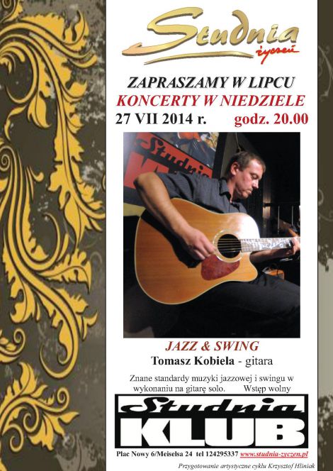 W ostatni niedziel lipca w krakowskiej Studni ycze Tomasz Kobiela wykona znane standardy jazzowej i swingu.