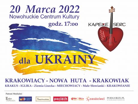 W tym roku Kapele Serc zagraj na scenie Nowohuckiego Centrum Kultury 20 marca, a gra bd dla Ukrainy. W trakcie koncertu bdziemy mieli okazj zobaczy folklor w najrniejszej odsonie. W programie wystpy zespou Krakowiak, Nowa Huta, Krakowiacy, a take: Zespou Taca Ludowego "Krakowianie", Zespou Tacw i Pieni Bakaskich IGLIKA, ZPiT AGH "Krakus" im. Wiesawa Biaowsa, ZPiT "Ziemia Lisiecka", ZPiT MIECHOWIACY i ZPiT Mae Sowianki.