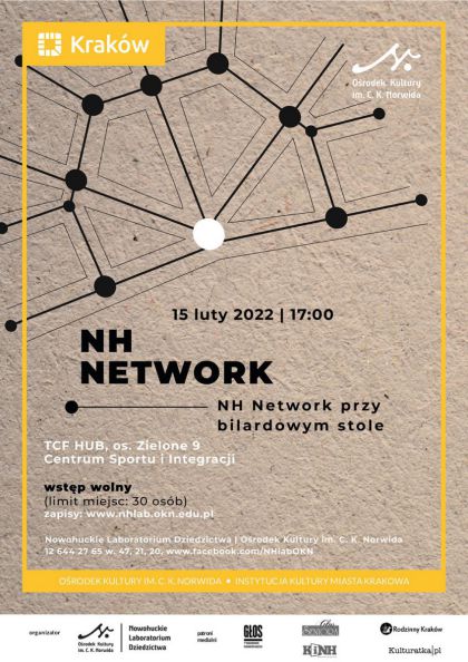 Wstęp wolny. Obowiązują zapisy (do 15 lutego 2023 r., godz. 15:00) przez formularz na stronie: https://okn.edu.pl/nowohuckie-laboratorium-dziedzictwa/nh-network-przy-bilardowym-stole-zapisy/