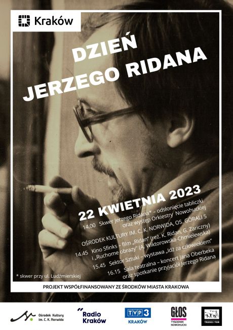 W programie m.in.: występ Orkiestry Nowohickiej, pokaz filmu "Ridan", promocja książki "Ruchome obrazy" inspirowanej życiem i twórczością reżysera, wernisaż wystawy "Idź za człowiekiem", koncert gitarowy oraz spotkanie przyjaciół Jerzego Ridana.\