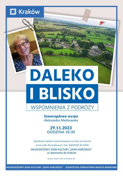 Cykl „Daleko i blisko” to niezwykłe spotkania z podróżnikami, fotografami, osobami ciekawymi świata i ludzi. Zapraszamy osoby, które chcą podzielić się swoimi wspomnieniami z podróży. Prezentujemy zdjęcia z wypraw, a zaproszeni prelegenci wzbogacają te pokazy swoimi opowiadaniami. Na naszych spotkaniach nie brakuje również doznań kulinarnych, gdyż opowieści są dodatkowo okraszone poczęstunkiem związanym z omawianym miejscem czy regionem. Poczęstunek ten sponsoruje Dzielnica V – Krowodrza.