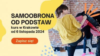 "KURS SAMOOBRONY oczywiście poleciłabym innym! Atmosfera super. Prowadzący cierpliwi, kompetentni i pomocni. Po pierwszych zajęciach już poczułam większą pewność w ciele i w głowie! Najbardziej podobała mi się mnogość różnych technik (w tak krótkim czasie trwania kursu!), indywidualne podejście do każdego, poprawa błędów, ćwiczenia tłumaczone w bardzo klarowny sposób." - to opinia Joanny, naszej uczestniczki. Dołącz i Ty!