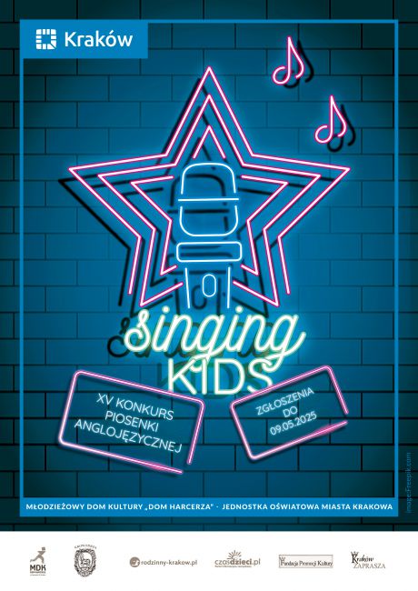 Młodzieżowy Dom Kultury „Dom Harcerza” przy ul. Reymonta 18 w Krakowie zaprasza do udziału w kolejnej edycji Konkursu Piosenki Anglojęzycznej „SINGING KIDS”. Konkurs skierowany jest do uczniów szkół podstawowych i średnich w wieku 7–19 lat.