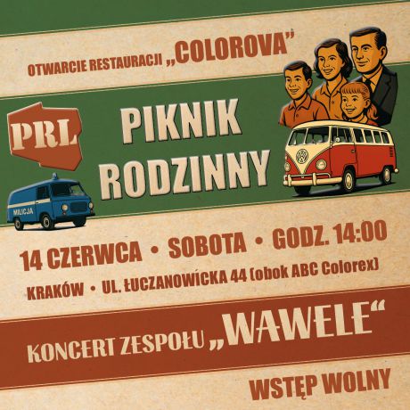 🎉 WIELKI PIKNIK RODZINNY & ZLOT POJAZDÓW PRL + OTWARCIE restauracji COLOROVA! 🚐🍽️
