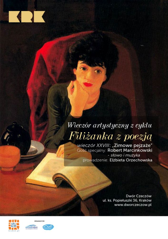 Dwr Czeczw zaprasza na kolejny ju 28 wieczr artystyczny w cyklu Filianka z poezj. Tym razem zapraszamy na : Zimowe pejzae. Gociem specjalnym wieczoru bdzie Robert Marcinkowski.