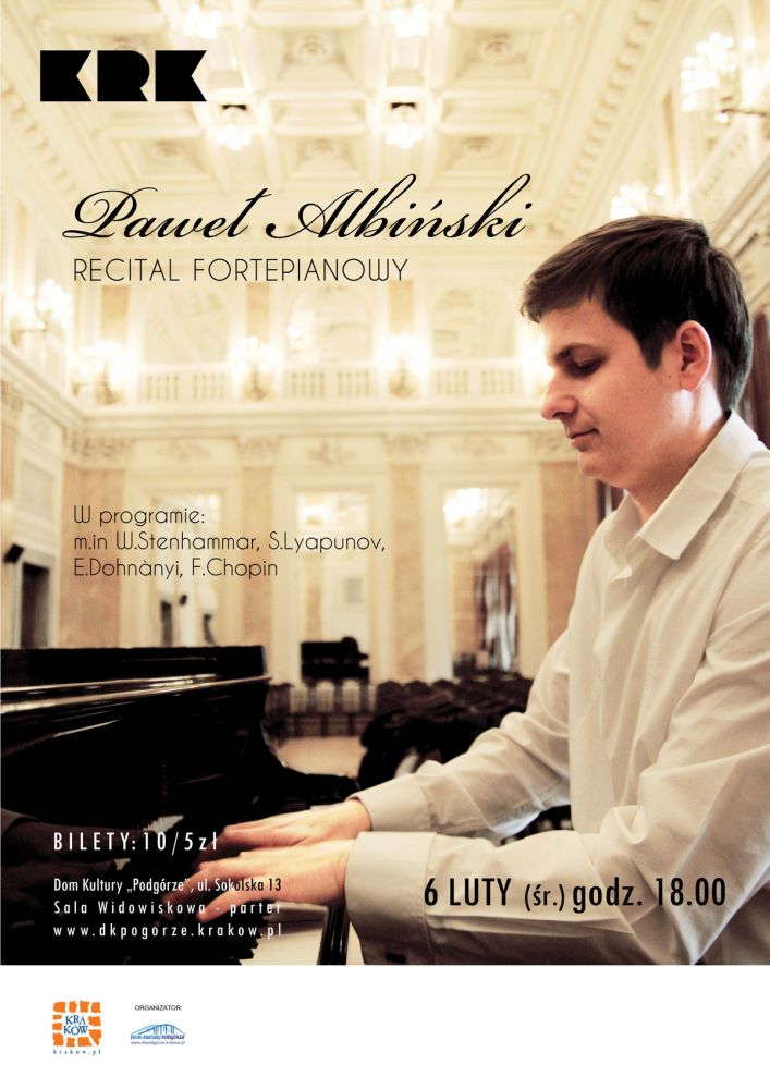 Paweł Albiński po raz kolejny również zaskoczy szerokš publicznoœć swoimi muzycznymi znaleziskami. Tym razem po raz pierwszy w Polsce wykona utwory fortepianowe W.Stenhammara i S.Lyapunova. Będzie to premierowe - długo oczekiwane wykonanie tych kompozytorów w Krakowie.