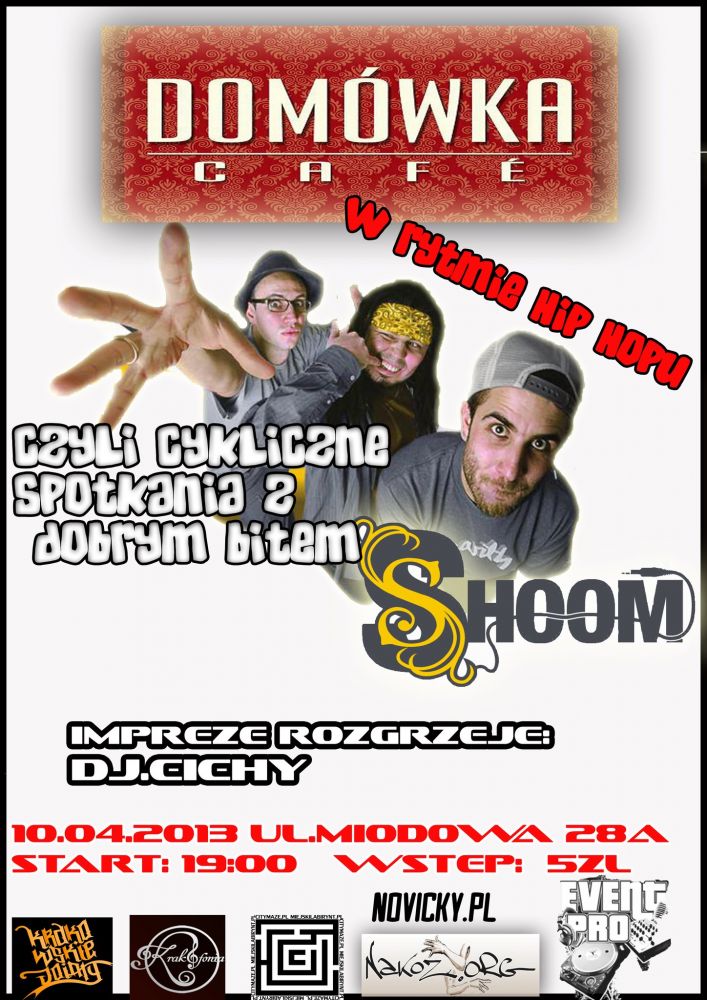 Krakowski skład Shoom już 10 kwietnia wystšpi w klubo-kawiarni Domówka Cafe (ul. Miodowa 28a). Koncert Shoomowin będzie pierwszym z serii Domówka w rytmie Hip-Hop czyli cykliczne spotkania z dobrym bitem!