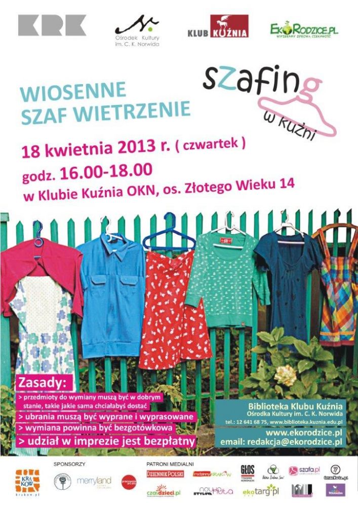 Biblioteka i Klub „KuŸnia” Oœrodka Kultury im. C. K. Norwida oraz portal Ekorodzice.pl zapraszajš na SZAFING pod hasłem: Wiosenne szaf wietrzenie.