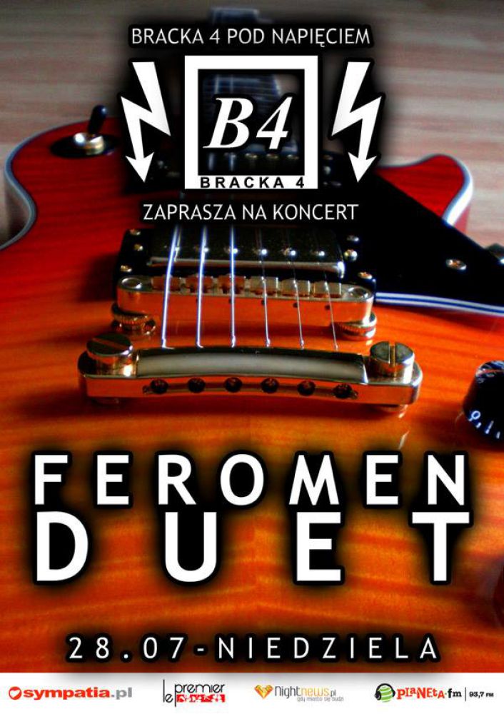 FEROMEN to zespół grajšcy szeroko pojętš muzykę ,akustycznš wykonujšcy covery artystów zagranicznych i polskich. Zespół występuje zarówno jako duet jak i trio. W skład zespołu wchodzš panowie: Adam Drzewiecki - muzyk - pianista, klawiszowiec, aranżer, producent. Absolwent Instytutu Jazzu w Akademii Muzycznej w Katowicach. Współpracuje m.in. z zespołami: PUDELSI, WAWELE, MAGDĽ FEMME, WINTERHILL. Paweł Dudzik wokalista, gitarzysta i tekciarz na co dzień w zespole WINTERHILL dawniej lider zespołu Milefoli. Skład uzupełnia Marek Cybura grajšcy na przeszkadzajkach i instrumentach perkusyjnych który jest również perkusistš WINTERHILL dawniej Milefoli, Gabbeh.