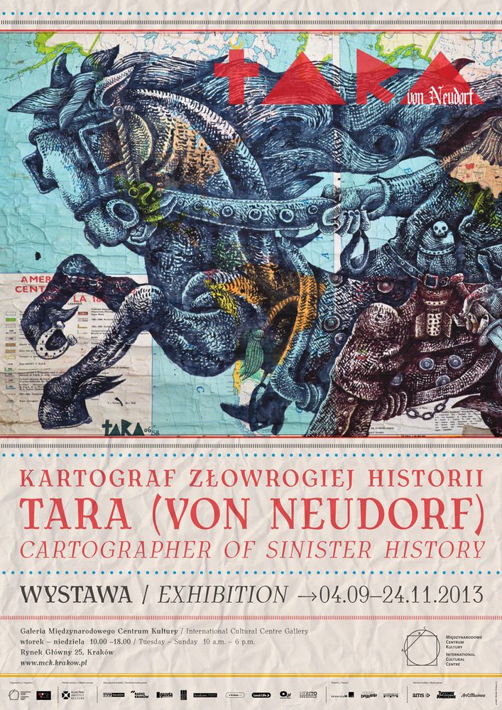 Po raz pierwszy w Polsce Galeria MCK zaprezentuje twórczoć rumuńskiego artysty Tary (von Neudorf). Tara najchętniej posługuje się czarnym markerem i czerwonš farbš jego najbardziej znane prace powstały na starych, komunistycznych mapach i planszach szkolnych, w które wrysował karykaturalnš i bezkompromisowš prawdę o naszych czasach. W swojej twórczoci odwołuje się do niewygodnej historii, komentuje też współczesnš politykę zarówno lokalnš, rumuńskš, jak i kwestie uniwersalne. Na wystawie znajdzie się ponad 80 prac mapy, prace na papierze, rzeby, ale także własne ubrania artysty wyszywane, zamalowywane, kreowane w całkowicie autorski sposób. Wystawę Kartograf złowrogiej historii. Tara (von Neudorf) oglšdać można w dniach 4 wrzenia 24 listopada 2013 r.