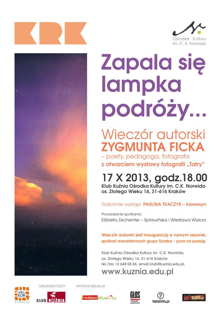 Serdecznie zapraszamy do Galerii m Klubu Kunia orodka Kultury im. C. K. Norwida na otwarcie wystawy fotografii i wieczór autorski Zygmunta Ficka.