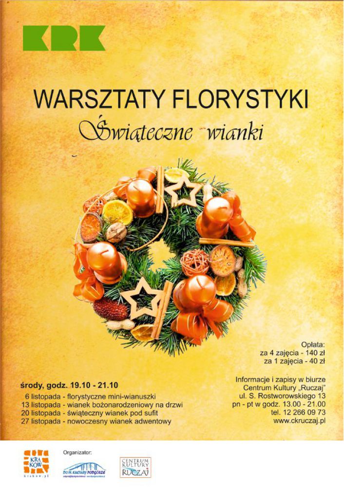 Zapisy w biurze CK "Ruczaj", ul. Rostworowskiego 13, od pn-pt w godz. 13:00-21:00, tel. 12 266 09 73 lub mailowo: biuro@ckruczaj.pl.