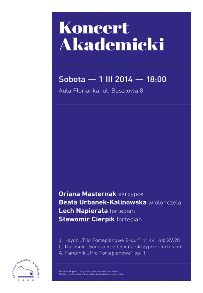Zapraszamy serdecznie na koncert, który odbędzie się 1 marca 2014 roku o godz. 18:00 w Auli Florianka, przy ul. Basztowej 8 w Krakowie.