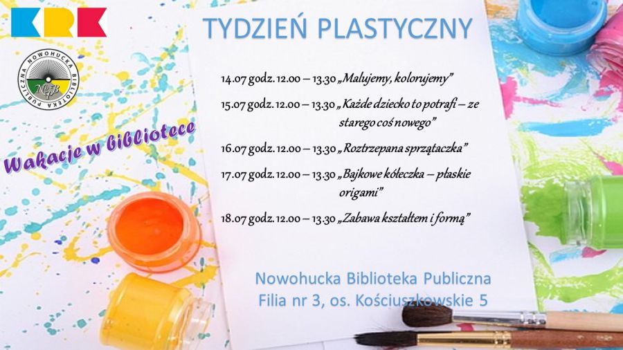 W ramach Akcji Lato 2014 w Filii nr 3 Nowohuckiej Biblioteki Publicznej w Krakowie trwa Tydzień Plastyczny pn. Malujemy, kolorujemy.