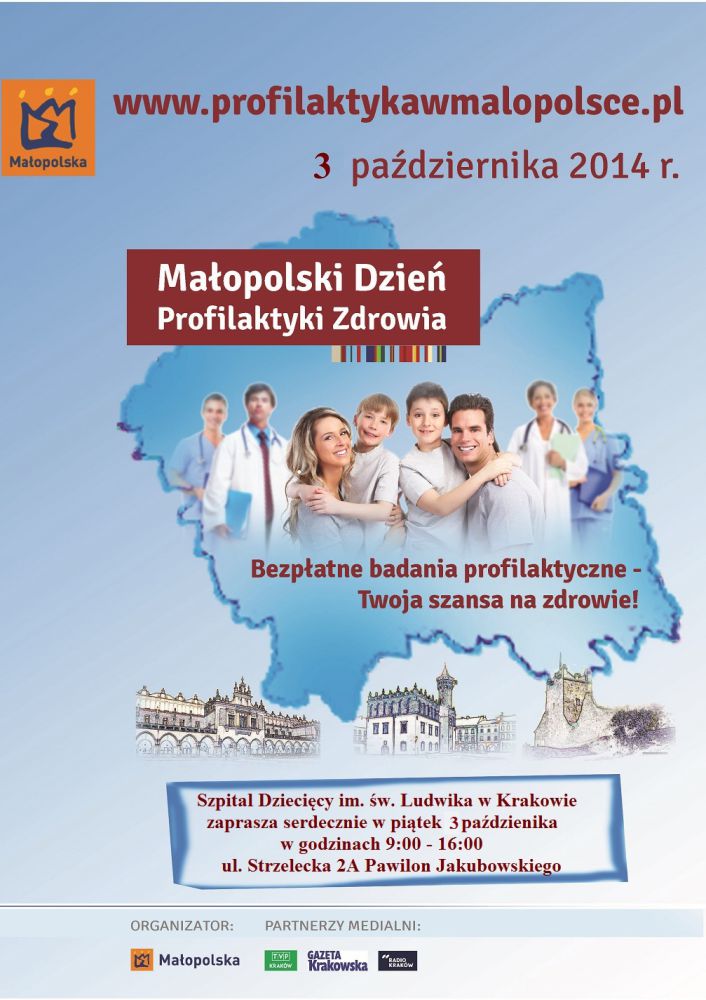 Szpital Dziecięcy im w. Ludwika w Krakowie serdecznie zaprasza w pištek 3 padziernika 2014 r. w godz. 9:00-16:00 rodziców wraz z dziećmi oraz grupy zorganizowane z krakowskich przedszkoli oraz szkół podstawowych na Dzień Otwarty.