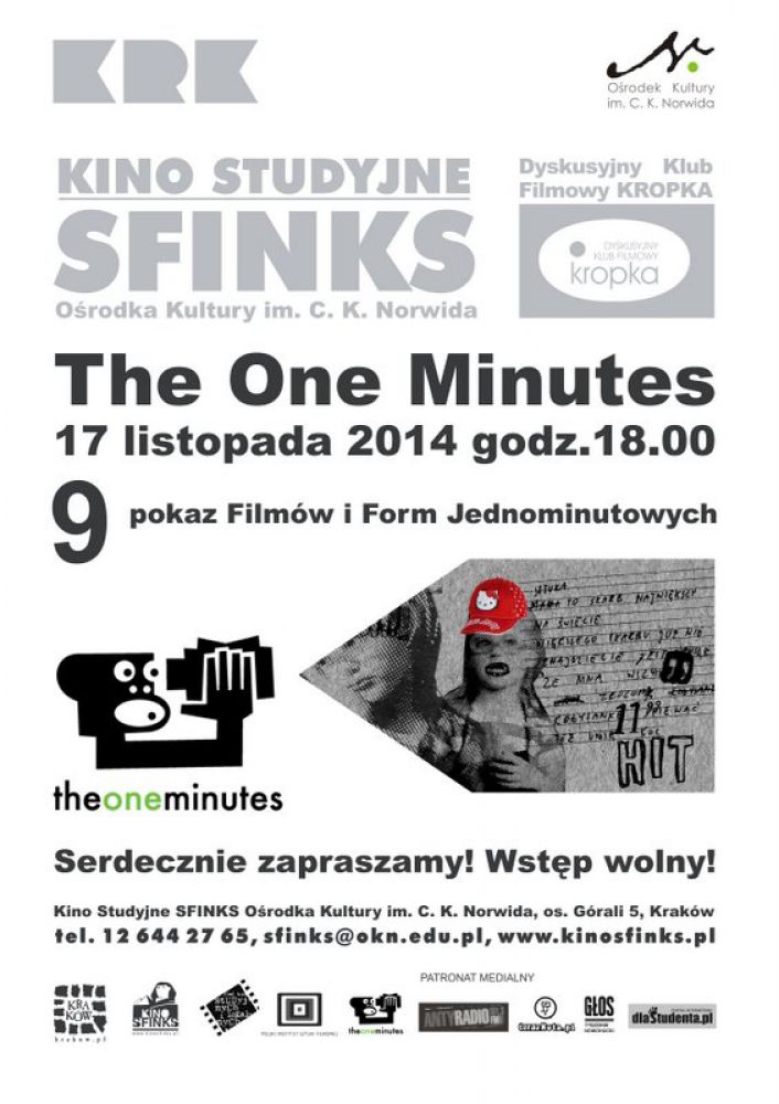 Pokaz najlepszych „jednominutówek” to zastrzyk emocji i dobrej zabawy dlatego - już po raz dziewišty – Kino Studyjne Sfinks Oœrodka Kultury im. C. K. Norwida zaprasza do obejrzenia nagrodzonych i wyróżnionych obrazów Festiwalu Filmów i Form Jednominutowych The One Minutes!