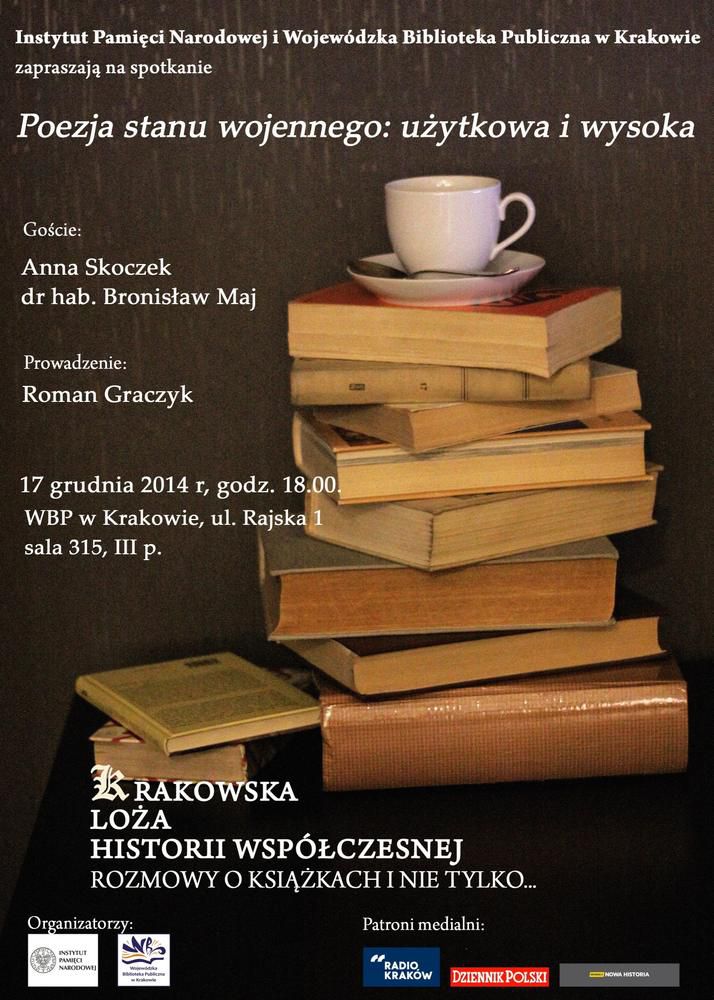 Poezja stanu wojennego: użytkowa i wysoka spotkanie z cyklu Krakowska Loża Historii Współczesnej Kraków, 17 grudnia 2014 r.