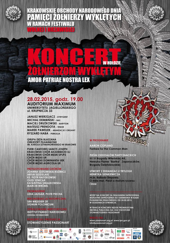 Oddział Instytutu Pamięci Narodowej w Krakowie oraz Stowarzyszenie PASSIONART zapraszajš na koncert galowy w Hołdzie Żołnierzom Wyklętym w dniu 28 lutego br.