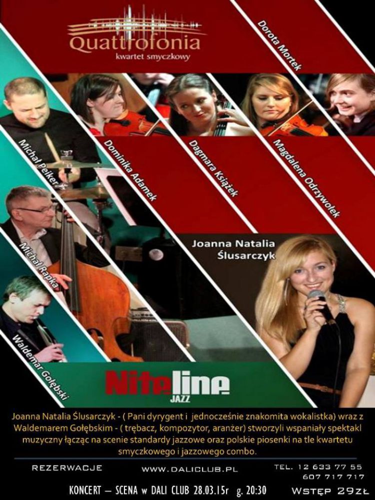 Joanna Natalia lusarczyk - (Pani dyrygent i jednoczenie znakomita wokalistka) wraz z Waldemarem Gobskim - (trbacz, kompozytor, araner) stworzyli wspaniay spektakl muzyczny czc na scenie standardy jazzowe oraz polskie piosenki na tle kwartetu smyczkowego i jazzowego combo.