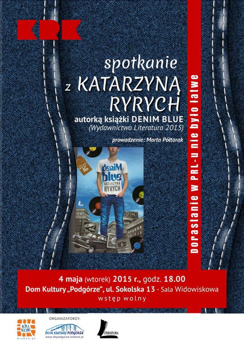 Dom Kultury Podgórze zaprasza 4 maja o godz. 18.00 na spotkanie z autorka ksišżki Denim Blue - Katarzynš Ryrych.