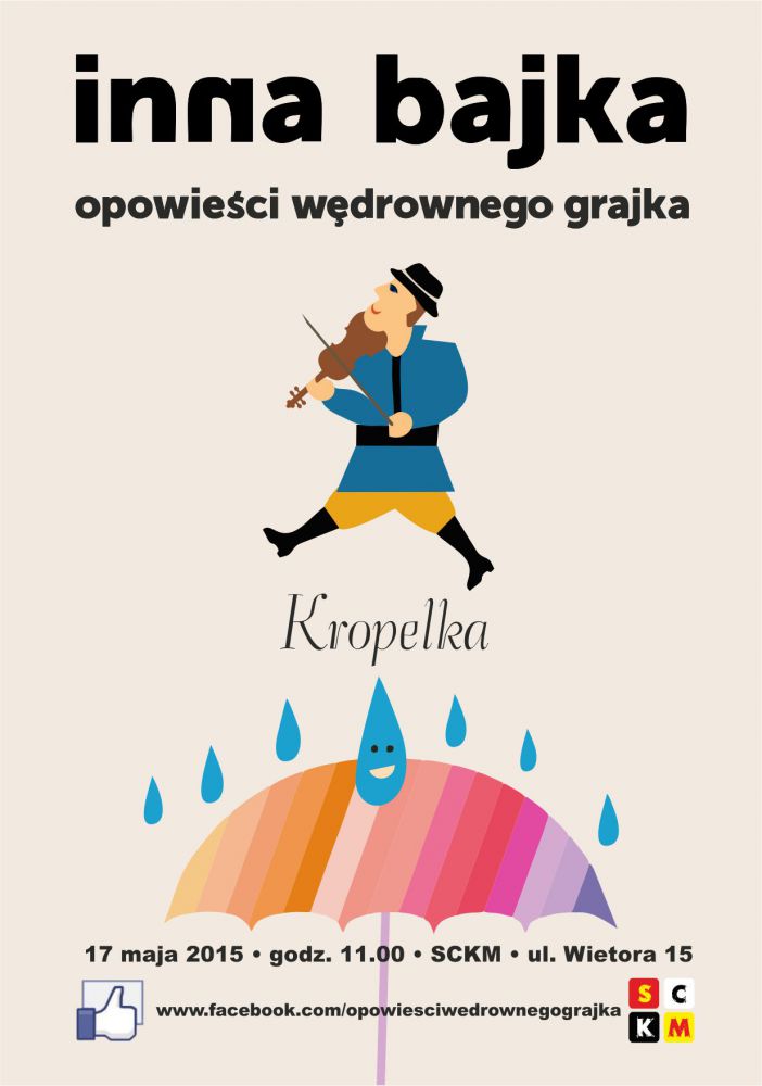 Inna Bajka - ,,Kropelka"- baœń autorska Aleksandry Barczyk. Kiedy się dzieje coœ nie po naszej myœli. Kiedy boimy się nowego, bo go przecież nie znamy. Kiedy myœlimy, że jesteœmy samiuteńcy na œwiecie. Kiedy...kiedy... WTEDY po prostu spotkajmy się, by usłyszeć historię o małej kropelce, chmurach, i przestrzeni.