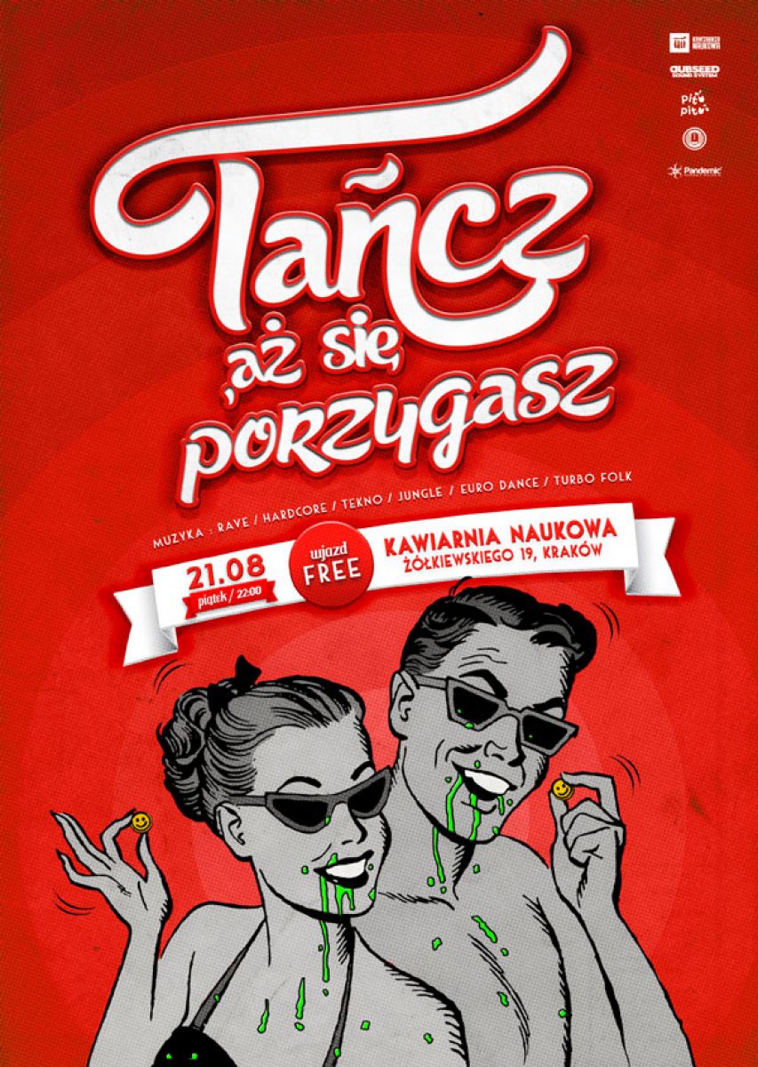 Temat jest taki, że w najbliższy pištunio 21.08 kolejny raz rozewrš się goœcinne bramy obiektu pod adresem Żółkiewskiego 19. Montujemy imprezę tanecznš w przekrojowych rytmach. Gatunków będzie tyle co vodki w Rosji, czyli od chuja dużo, więc nawet nie wymieniamy. Ale zamiast tego polecamy spojrzeć na lajnap i sprawdzić profile zaproszonych goœci.