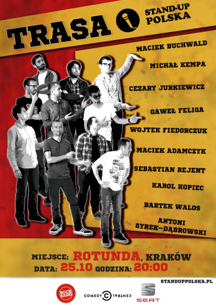 Ludzie odpowiedzialni za powstanie Stand-upu w Polsce dniach 23-31 padziernika odwiedzš Warszawę, Katowice, Kraków, Wrocław, Łód, Poznań, Szczecin, Gdańsk oraz Bydgoszcz.