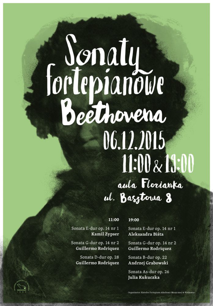 Kolejne dwa koncerty w ramach cyklu wykonań wszystkich sonat fortepianowych Ludwiga van Beethovena, przygotowane przez Katedrę Fortepianu Akademii Muzycznej, będš miały miejsce w niedzielę w Auli „Florianka”. Na pierwszy z nich zapraszamy przed południem na godzinę 11.00, natomiast drugi odbędzie się w ten sam dzień wieczorem o godzinie 19.00. Można powiedzieć, że pierwsza grudniowa niedziela upłynie pod znakiem muzyki wielkiego Beethovena. Muzyki Beethovena zawsze warto posłuchać. Jego twórczoœć, także fortepianowa, to kamień milowy w historii muzyki. Wstęp na koncert, jak zwykle w beethovenowskim cyklu koncertów fortepianowych, jest wolny.