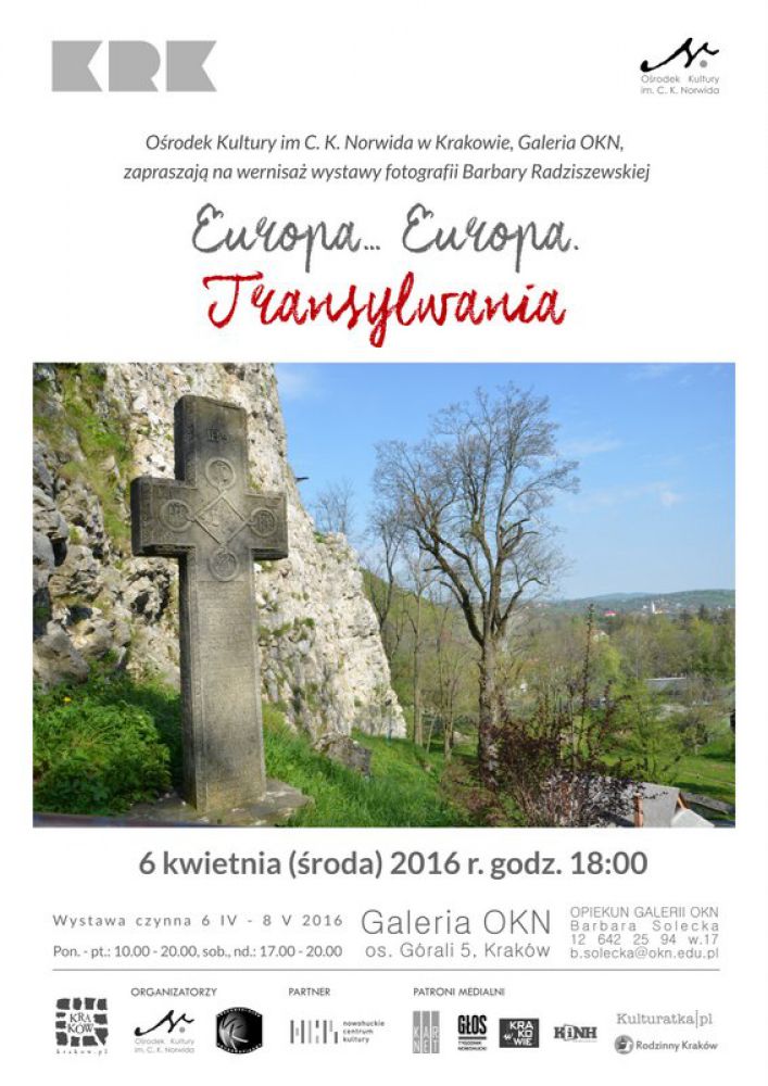 pt. „Europa... Europa. Transylwania" 6 kwietnia 2016 r. o godzinie 18.00 do Galerii OKN na os. Górali 5 w Krakowie. Wystawę można oglšdać od 07 IV - 8 V 2016 r. Wstęp wolny.