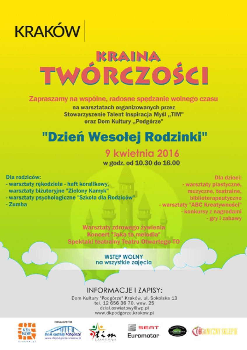 „Dzień wesołej Rodzinki” w programie: warsztaty rękodzieła, warsztaty psychologiczne, warsztaty plastyczne, muzyczne, teatralne, konkursy z nagrodami, gry i zabawy