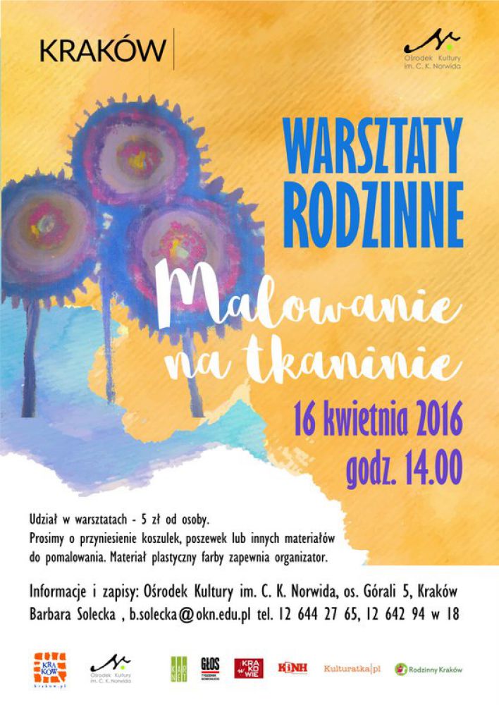Orodek Kultury im C. K. Norwida zaprasza na sobotnie Rodzinne warsztaty - MALOWANIA NA TKANINIE!