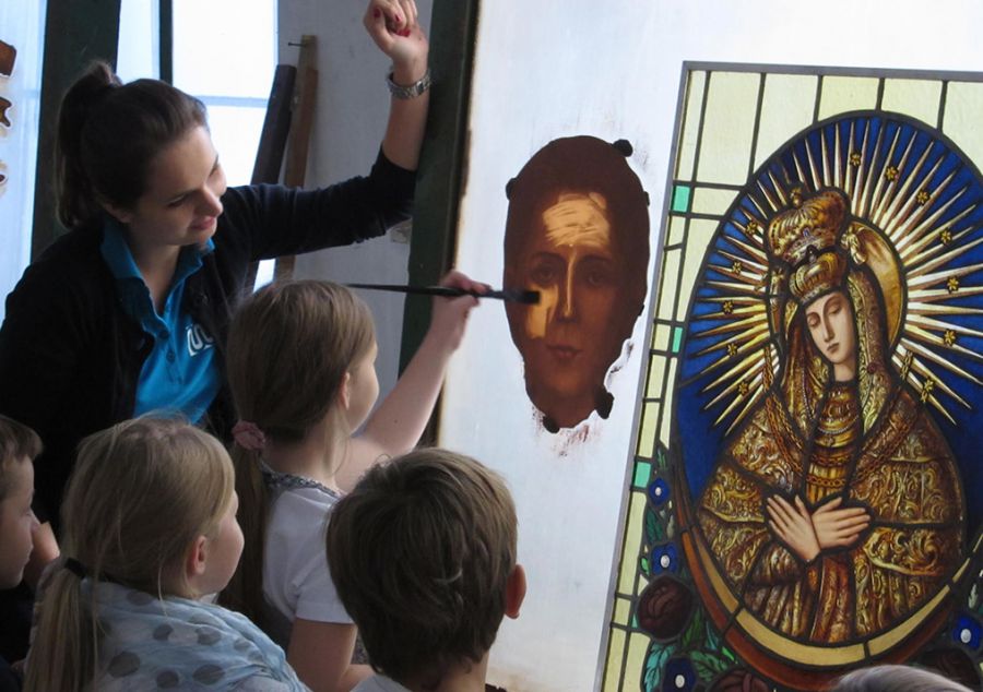 Muzeum dba również o najmłodszych: co sobotę organizujemy zajęcia dla dzieci, podczas których łšczymy zabawę z naukš przedstawiajšc tajniki sztuki witrażowej. Najpierw odbywa się 45-miutowe zwiedzanie pracowni dostosowane do wieku dzieci. Zapoznajš się one z takimi pojęciami jak żywe muzeum, warsztat, witraż. Obserwujš też mistrzów witrażowych przy pracy, mogš wzišć do ręki narzędzia i pędzle oraz pomalować na próbę witrażowš twarz. Po zwiedzaniu zapraszamy dzieci do kšcika kolorowanek witrażowych.