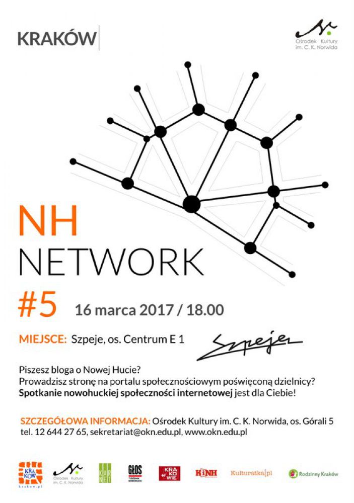 W efekcie pierwszego spotkania na facebooku powstała grupa NH Network, sieciujšca nowohuckš społecznoœć internetowš. Grupa przeznaczona jest dla osób prowadzšcych blogi/strony/profile na portalach społecznoœciowych poœwięcone Nowej Hucie. Członkowie grupy dzielš się ciekawymi wydarzeniami i akcjami, które polecajš do udostępniania na swoich stronach i wœród znajomych. Udostępniane informacje oznaczane sš jako ‪#‎NHNETWORK‬. Grupa służy ponadto do poszukiwania partnerów do różnych akcji społecznych.