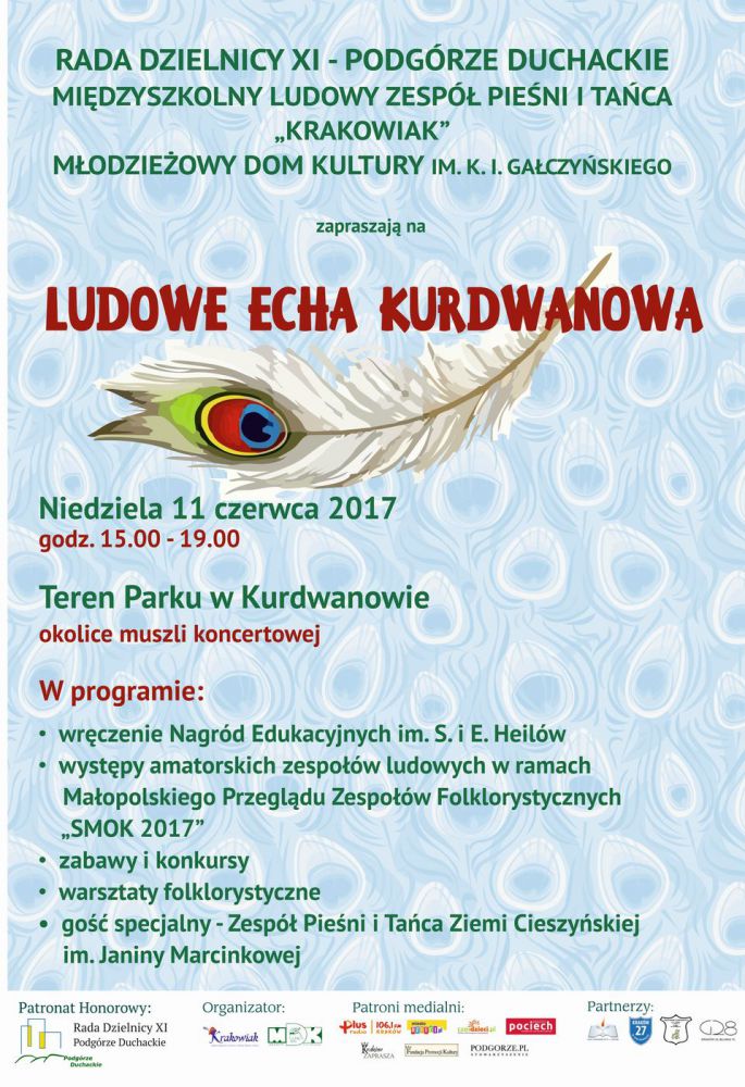 Międzyszkolny Ludowy Zespół Pieœni i Tańca „Krakowiak” we współpracy z Młodzieżowym Domem Kultury im. K.I. Gałczyńskiego organizuje wydarzenie plenerowe LUDOWE ECHA KURDWANOWA.