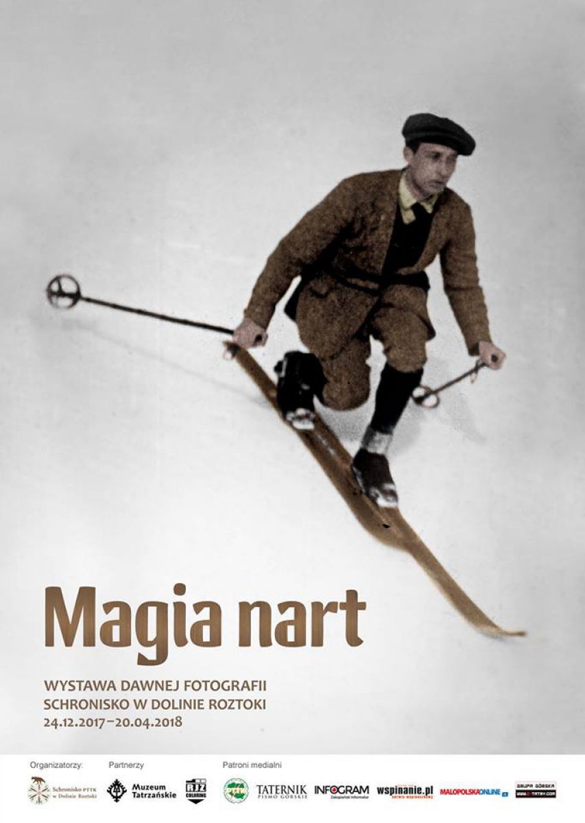 Polskie narciarstwo ma już ponad 120 lat historii. Prezentacja archiwalnych zdjęć ze zbiorów Muzeum Tatrzańskiego im. Dra Tytusa Chałubińskiego, pod tytułem „Magia nart”, zaprasza na wycieczkę, a właœciwie na narciarskš wyrypę przez lata i polskie góry. Będziemy towarzyszyli pionierowi narciarstwa w Polsce, Stanisławowi Barabaszowi w jego pierwszych próbach jazdy na dwóch deskach w roku 1888 w Cieklinie w Beskidzie Niskim i w 1894 roku w Zakopanem. Wraz z nieustraszonymi narciarzami lwowskimi przejdziemy bezdroża Czarnohory, Gorganów, Bieszczadów Wschodnich i Karpat Marmaroskich. Obserwujšc stare fotografie dowiemy się, jakiego sprzętu używano w czasach poczštków polskiego narciarstwa, jak się ubierano oraz czym narty smarowano. Wraz z pionierami Karpackiego Towarzystwa Narciarzy przemierzymy na drewnianych nartach z metalowymi wišzaniami patentu Zdarsky'ego œnieżne granie słynnych szczytów Howerli, Pietrosa i Turkuła. Będziemy zjeżdżać stromymi stokami Doboszanki w Gorganach i w marcowym słońcu wspinać się na skaliste Szpyci. Wreszcie nieodłšcznym elementem pierwszoklaœnej wyrypy narciarzy lwowskich były noclegi w szałasach i przewiewnych drewnianych kolebach, któremu towarzyszyło wycie wilków, których nigdy w opisanych górach nie brakowało. Przypomnimy trochę zapomniany fakt, że narciarstwo polskie zrodziło się we Lwowie. Stamtšd pasjonaci narciarstwa dotarli do Zakopanego i zachęcili zakopiańczyków do uprawiania „białego szaleństwa”. Tatry – najwyższe góry Polski – sprzyjały narciarzom i stały się Mekkš polskiego narciarstwa. Podczas naszej podróży przez historię polskiego narciarstwa odwiedzimy legendarne schroniska na Hali Pysznej i w Sławsku. Będziemy też kibicowali Mariuszowi Zaruskiemu i Stanisławowi Zdybowi podczas ich ekstremalnego zjazdu na nartach z Koœcielca w Tatrach w marcu 1911 roku. Poznamy wreszcie pierwszych zawodników i narciarskich mistrzów – przemierzajšcych na nartach tatrzańskie oraz karpackie bezdroża i wytrwale doskonalšcych swojš technikę, tych startujšcych głównie w zawodach krajowych. Nasza prezentacja pokazuje czasy, gdy narty były produkowane z drewna, a ludzie uprawiajšcy narciarstwo i taternictwo, byli z żelaza.