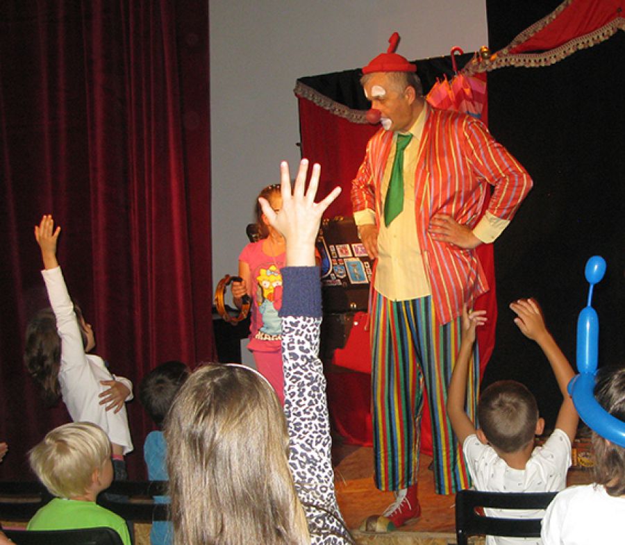 Pomysłowy klaun organizuje wielkš wyprawę balonem, konstruuje helikopter i podejmuje próbę wystartowania zbudowanym przez siebie samolotem. Podczas spektaklu dzieci poznajš tajemnice pantomimy, iluzji, muzyki i żonglerki. „Klaun w balonie” to duża dawka œmiechu i wspaniałej zabawy dla całej widowni. Dobra zabawa gwarantowana! Wszystkie dzieci zostajš obdarowane przez klauna balonami i pięknymi plakatami z imiennš dedykacjš.