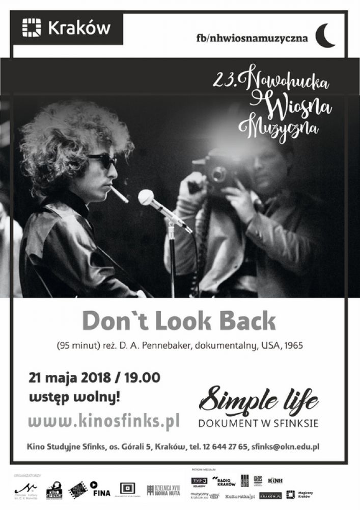 Pokaz filmu pt. Don`t Look Back w reżyserii D. A. Pennebakera. Majowy seans jest wydarzeniem towarzyszšcym 23. Nowohuckiej Wionie Muzycznej. Wstęp wolny.