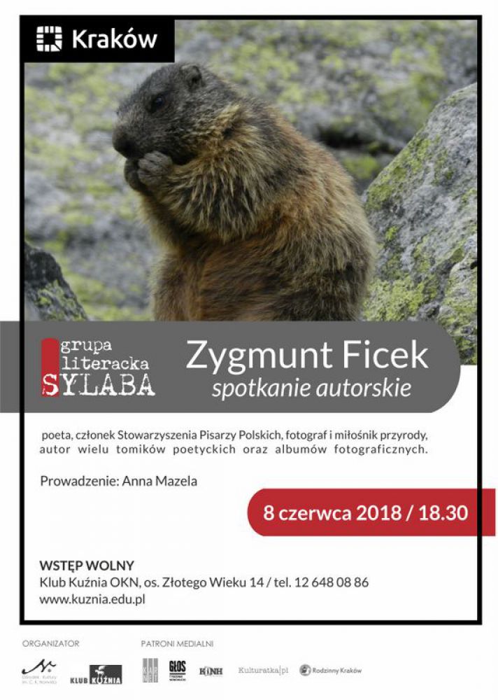 Zygmunt Ficek - poeta, członek Stowarzyszenia Pisarzy Polskich, fotograf i miłoœnik ptaków, autor wielu tomików poetyckich oraz albumów fotograficznych. Spotkanie będzie poœwięcone przede wszystkim promocji jego najnowszej ksišżki poetyckiej pt. "Pod okapem burzy", wydanej w tym roku przez Stowarzyszenie Pisarzy Polskich.