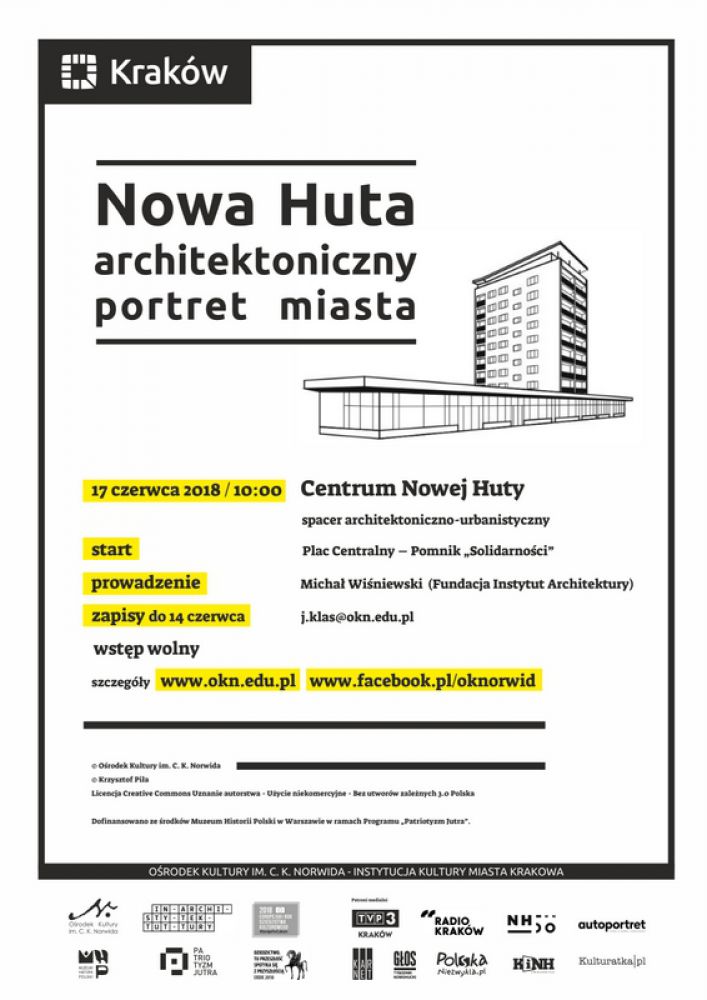 Spacer architektoniczno-urbanistyczny po centrum Nowej Huty w ramach projektu „Nowa Huta – architektoniczny portret miasta”. Prowadzenie: Michał Wiœniewski (Fundacja Instytut Architektury). Wstęp wolny. Obowišzujš zapisy.