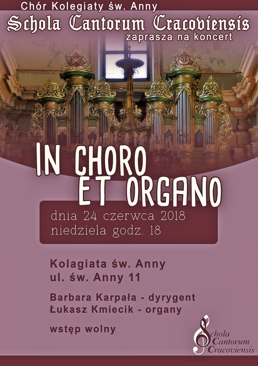 Chr Kolegiaty w. Anny "Schola Cantorum Cracoviensis" zaprasza na koncert "In Choro et Organo"