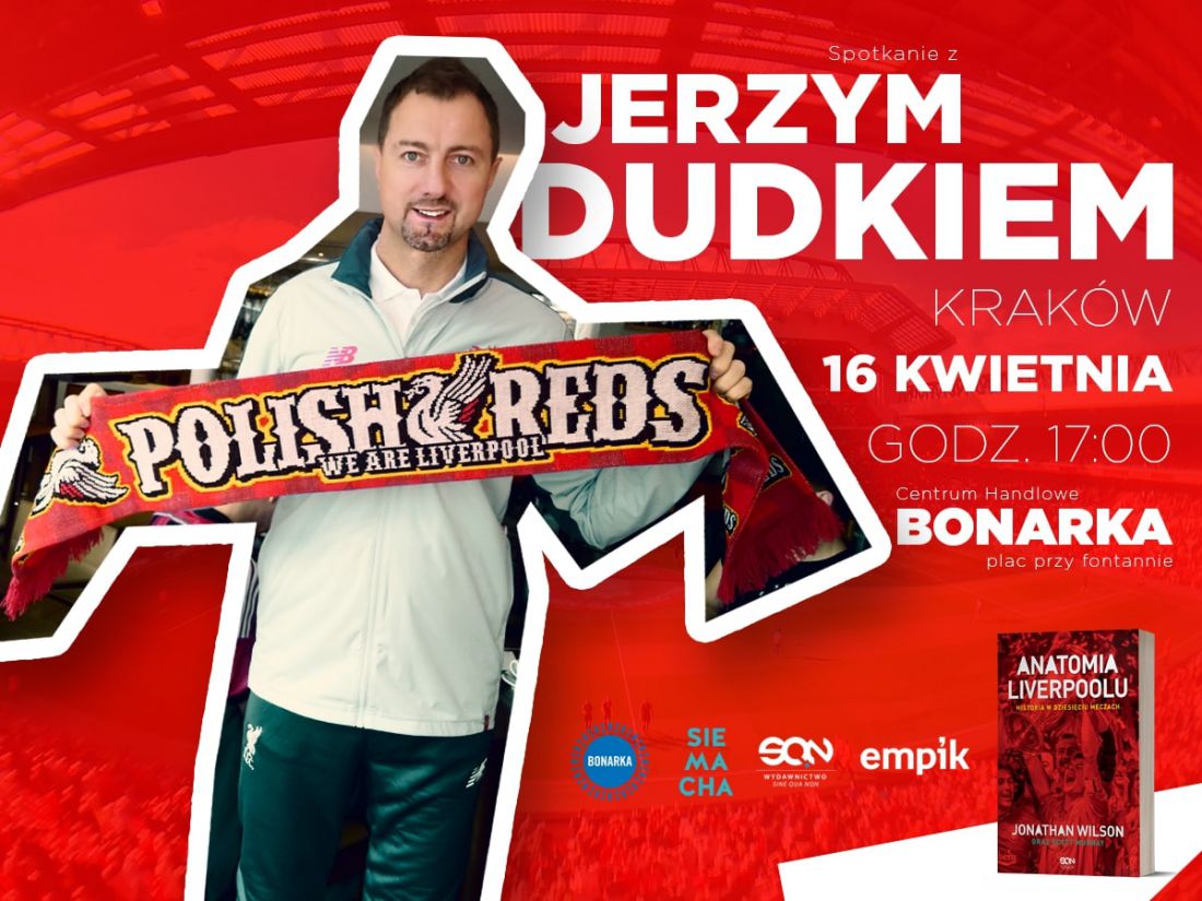 Jerzy Dudek, były reprezentant Polski, zawodnik Liverpoolu i Realu Madryt, spotka się z kibicami już 16 kwietnia o godz. 17:00 na placu przy fontannie w Bonarce. Piłkarz opowie o wygranym finale Ligi Mistrzów w 2005 roku i kulisach transferu do drużyny Królewskich. Spotkanie jest organizowane przy okazji polskiej premiery ksišżki „Anatomia Liverpoolu. Historia w dziesięciu meczach”.