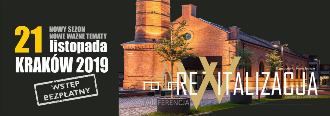 21 listopada 2019 w Krakowie - Konferencja o najlepiej rewitalizowanych przestrzeniach w Polsce. Unikatowe inwestycje! Trudne procesy rewitalizacji! Drugie życie modernizowanych budynków i wnętrz.