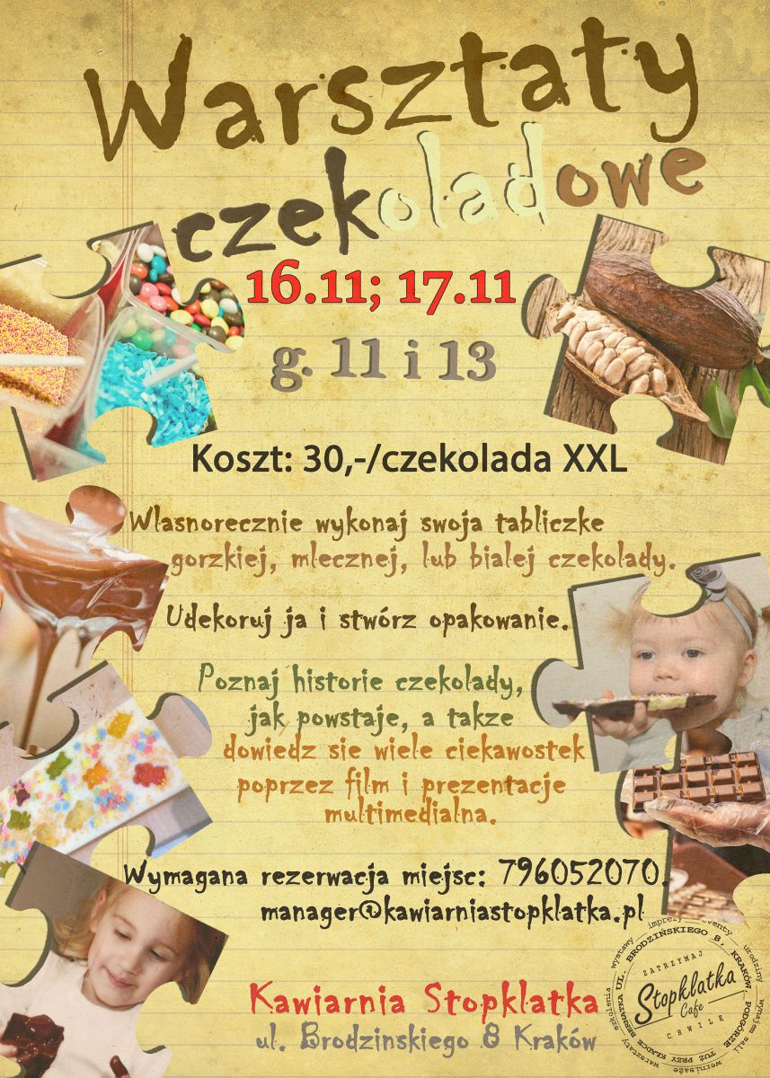 Kawiarnia Stopklatka zaprasza wszystkie dzieci na warsztaty, na których przygotujš dla swoich bliskich (albo dla siebie) autorskie czekolady!