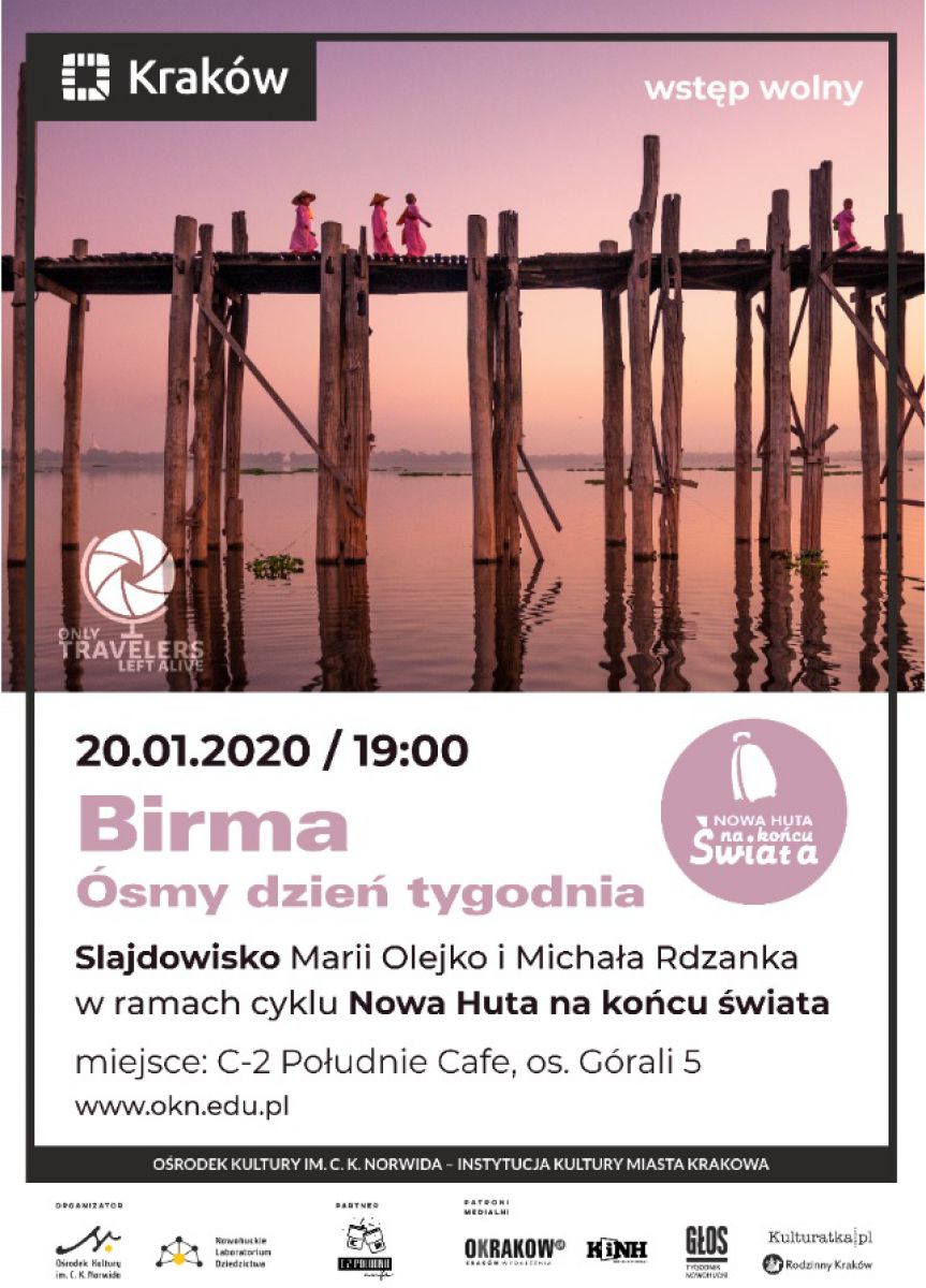 Orodek Kultury Norwida zaprasza na slajdowisko Marii Olejko i Michała Rdzanka pt. Birma. Ósmy dzień tygodnia, w ramach cyklu Nowa Huta na końcu wiata. Wstęp wolny.