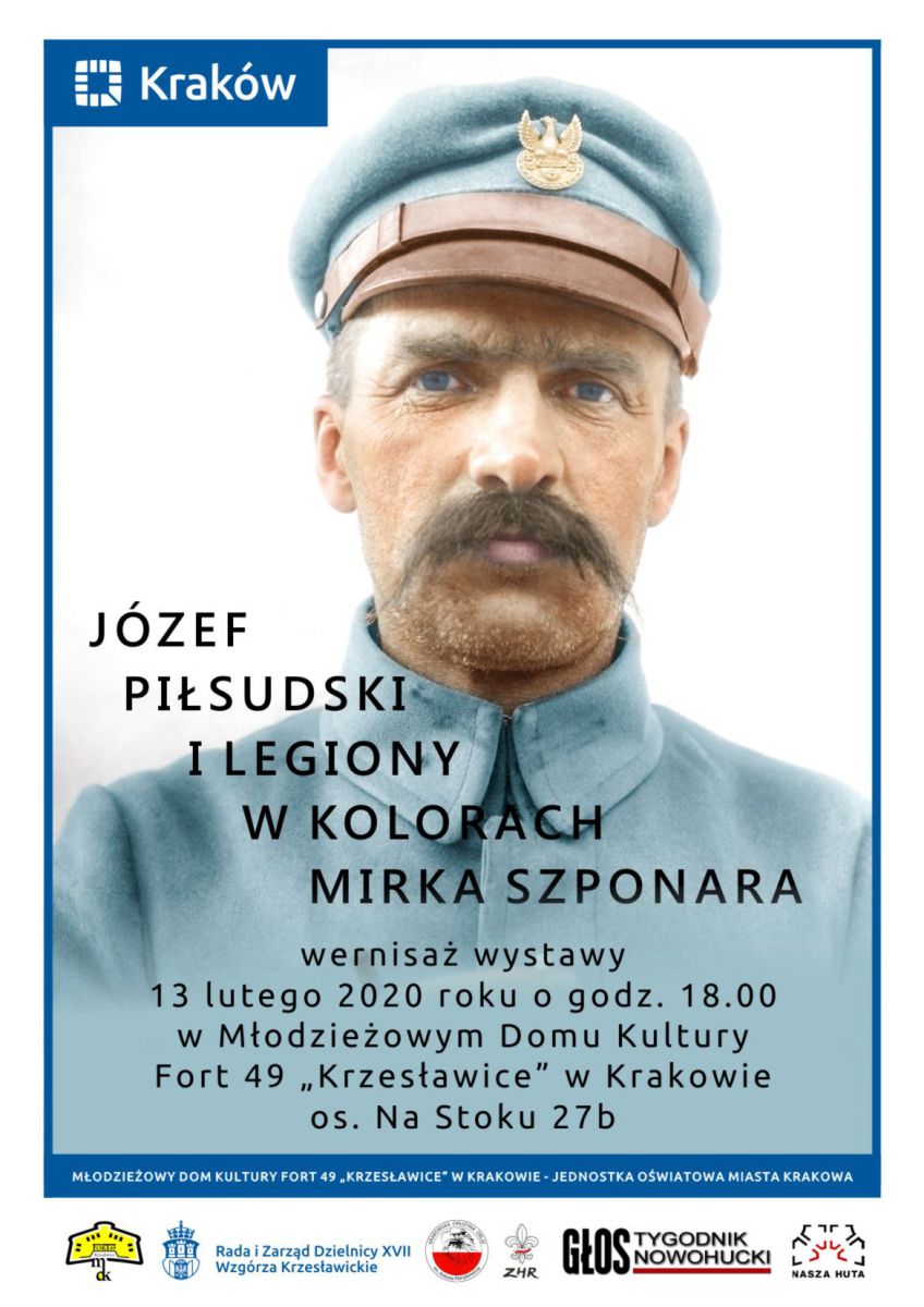 Wystawa Józef Piłsudski i Legiony w kolorach Mirka Szponara prezentuje archiwalne zdjęcia poddane procesowi koloryzacji. Wernisaż z udziałem Pana Mirka Szponara odbędzie się 13 lutego br., o godz. 18.00 w Młodzieżowym Domu Kultury Fort 49 Krzesławice,