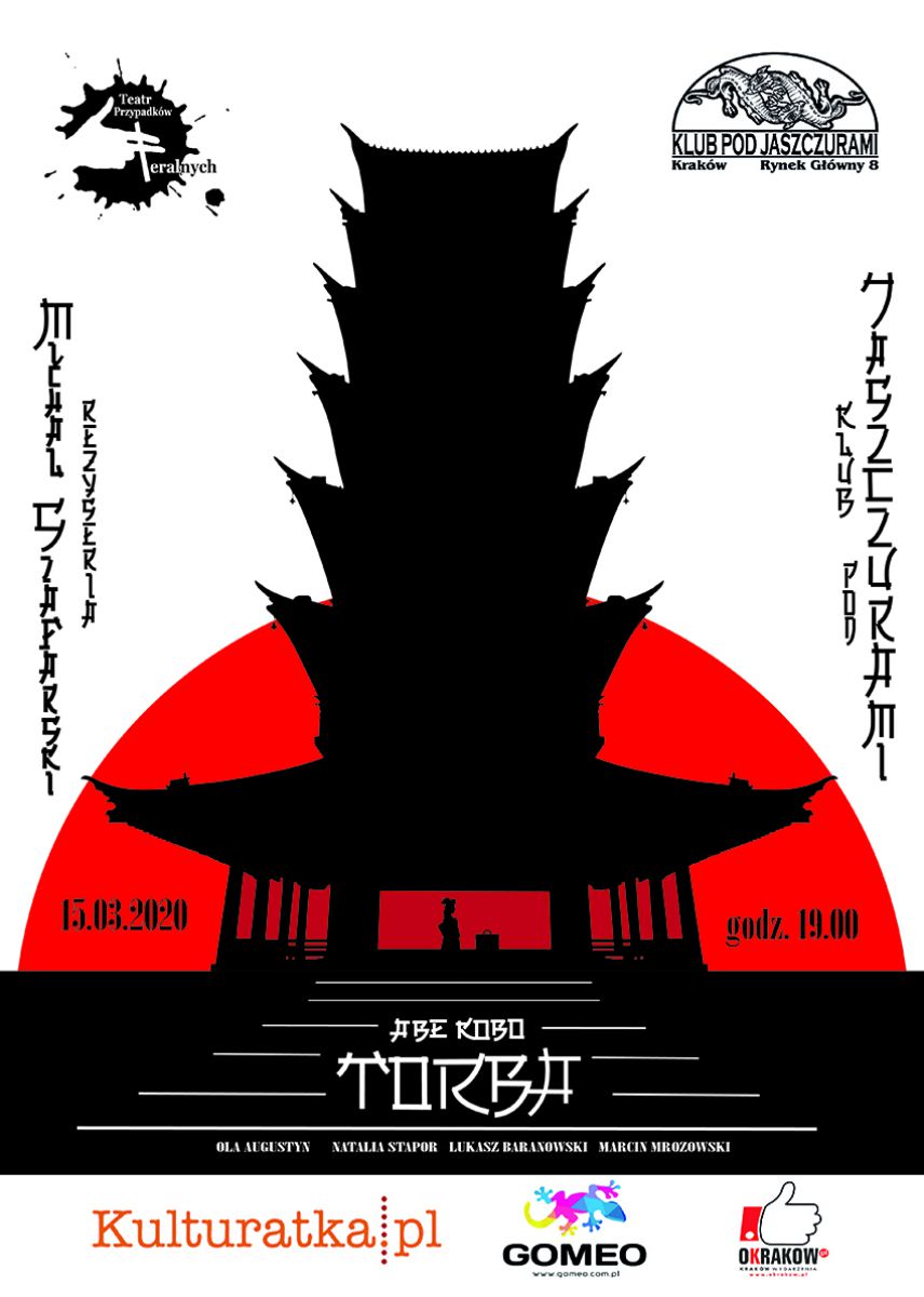 Już w niedzielę 15.03 zapraszamy do Klubu Pod Jaszczurami na najnowszy spektakl Teatru Przypadków Feralnych na podstawie dramatu japońskiego pisarza Kobo Abe pt. "Torba".