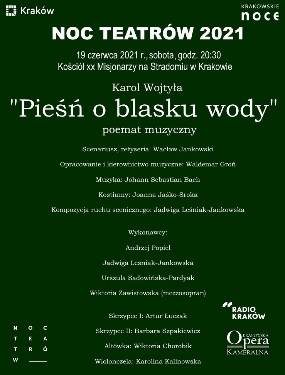 Bezpłatne wejciówki na poemat muzyczny Pień o blasku wody będš do odbioru 15 i 16 czerwca 2021 w godzinach 10:00-14:00 w siedzibie Krakowskiej Opery Kameralnej. Serdecznie zapraszamy!