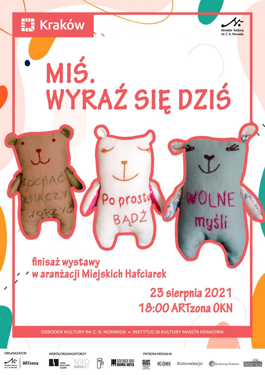 ARTzona Orodka Kultury im. C. K. Norwida od 6 sierpnia 2021 roku zaprasza do odwiedzenia wystawy pt. MI. WYRA SIĘ DZI w aranżacji Miejskich Hafciarek. Finisaż wystawy odbędzie się 23 sierpnia 2021 r.